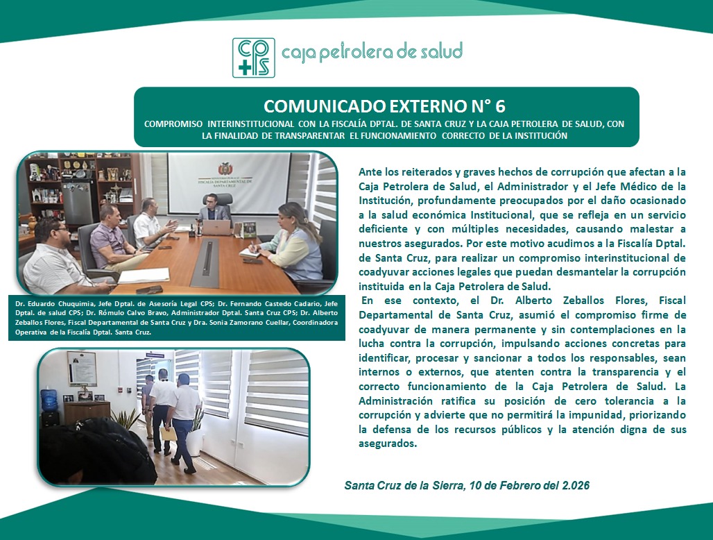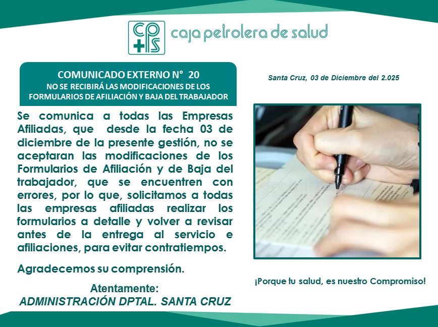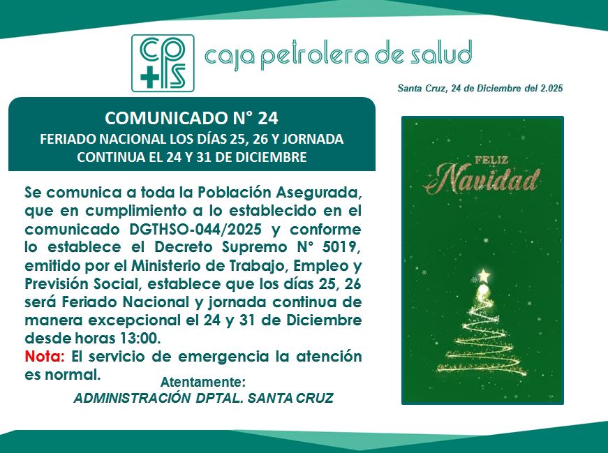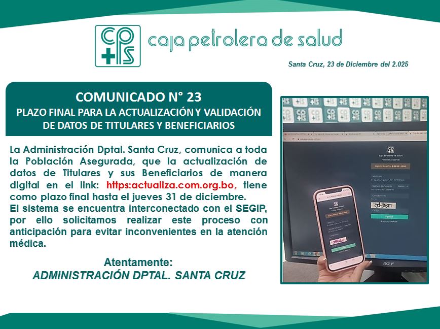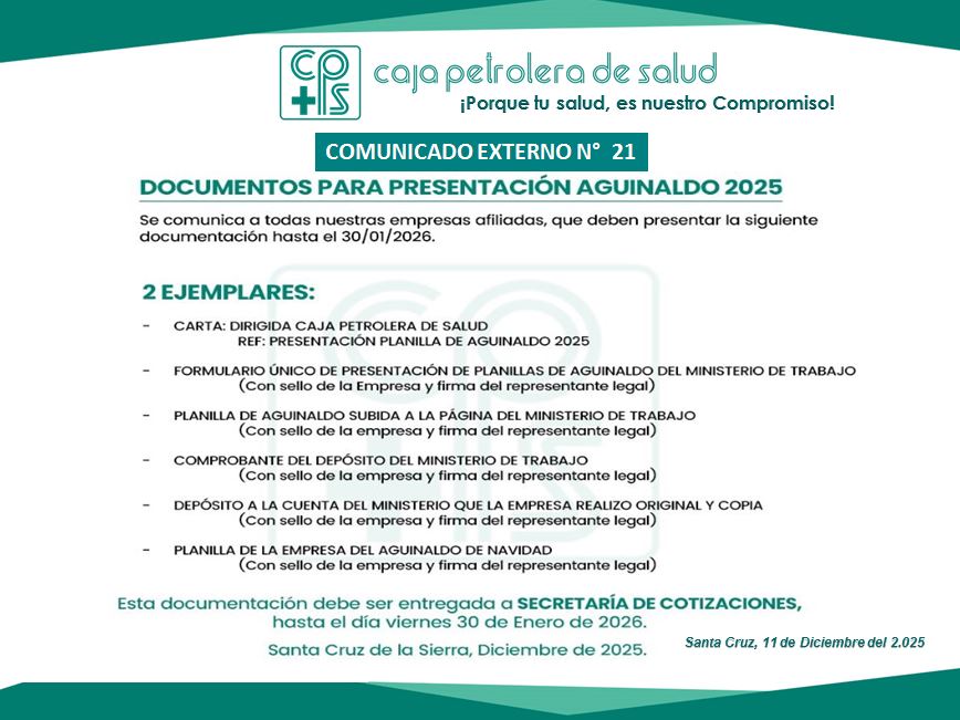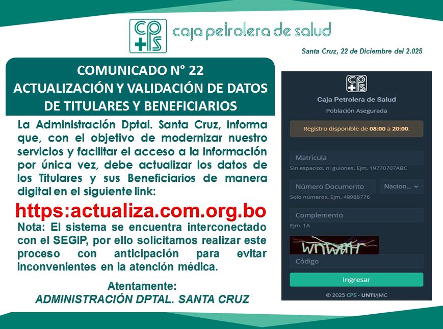 Encuentre en este apartado todos los comunicados de la C.P.S. Regional Santa Cruz.