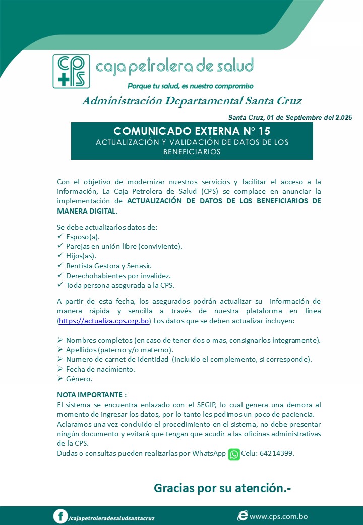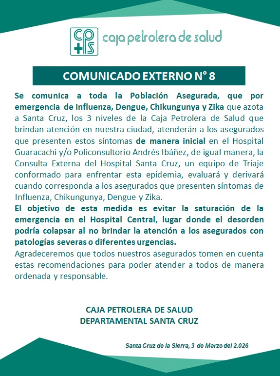 Encuentre en este apartado todos los comunicados de la C.P.S. Regional Santa Cruz.